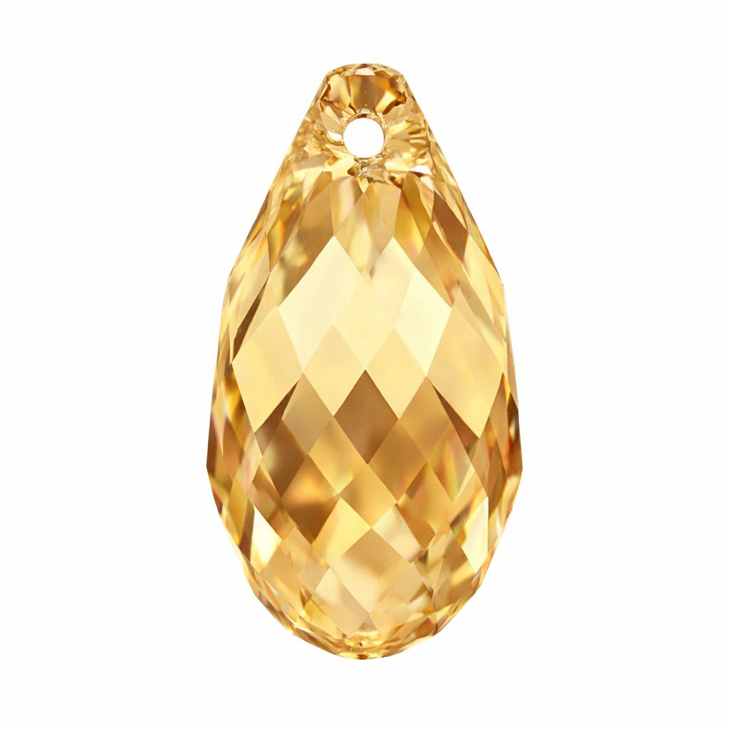 Picatura din cristal cu forma clasica fatetata. Piatra are dimensiunea de 17,0 x 8,5 mm si culoarea Crystal Golden Shadow, cu nuanta aurie pe baza transparenta. Modelul nu are orificiu confirmat. Utilizata ca element decorativ in bijuterii si pandantive.
