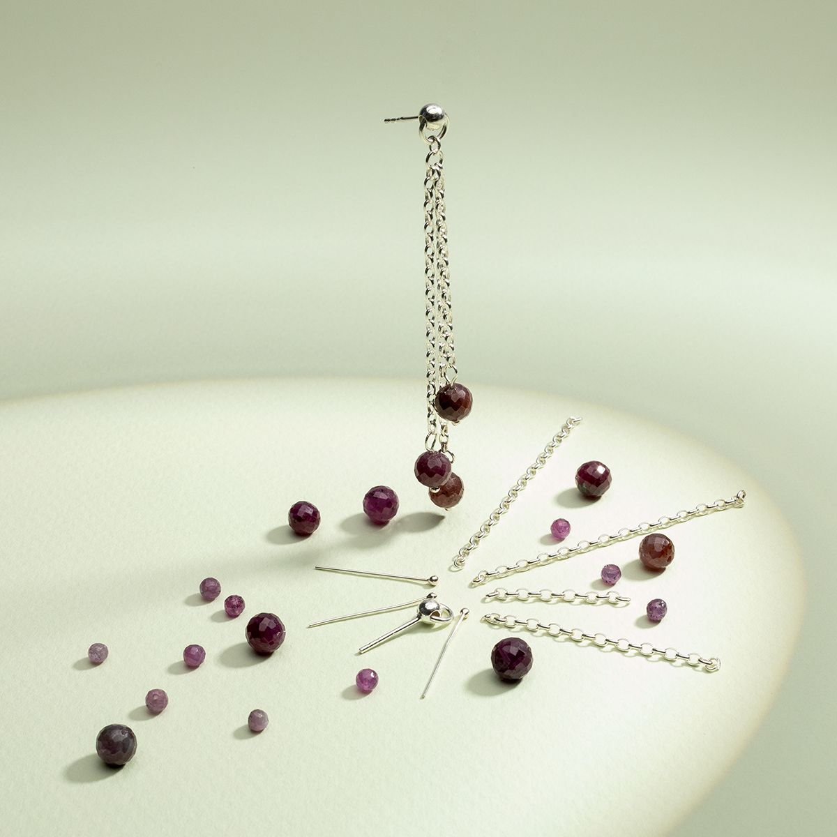 Acul este prevăzut cu o bilă topită, care îndeplinește o funcție estetică și tehnică — blochează elementele înșirate precum mărgelele, perlele sau cristalele, prevenind alunecarea acestora. Este o bază excelentă pentru cercei suspendați, pandantive, brățări și compoziții tip ciorchine.