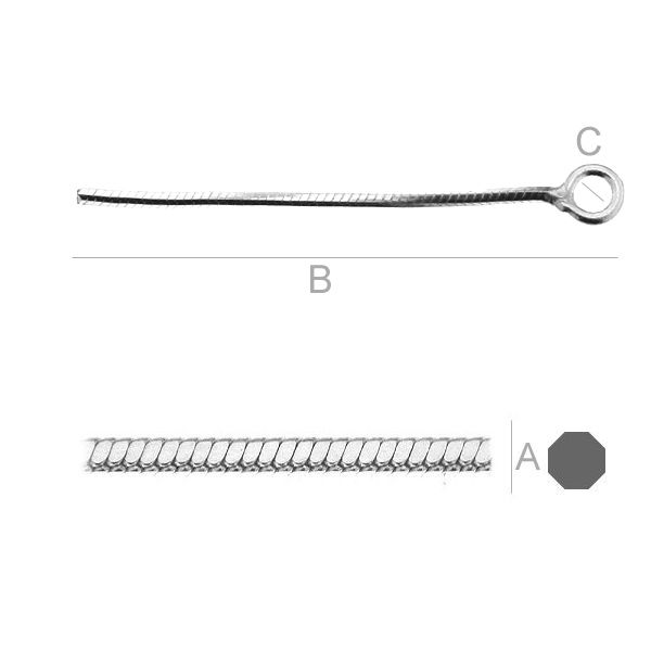 A=0,90 mm; B=22,00 - 67,00 mm; C=1,50 mm, argint (AG-925)