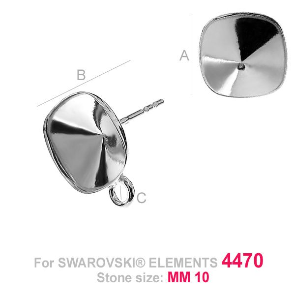 Cercei tip știft - bază pentru Cushion Square, argintiu AG 925