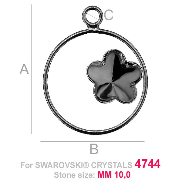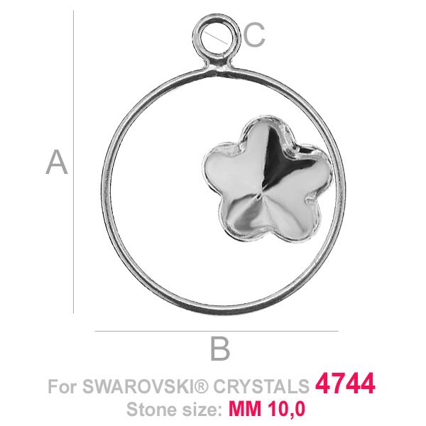 Pandantiv - bază pentru Flower Fancy în cerc 4744 10 MM, argint AG 925