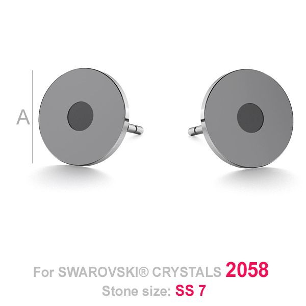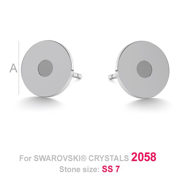 Cercel cu știft - plăcuță rotundă - bază pentru cristal SW, argint AG 925