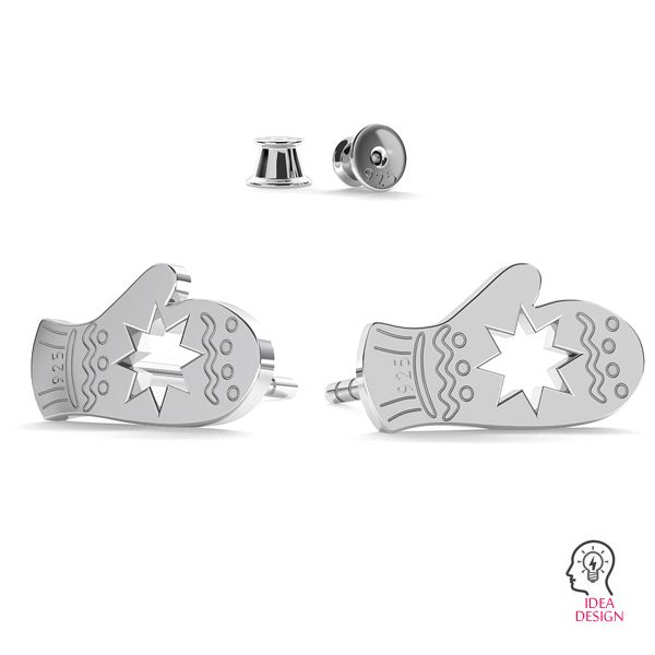 Cercei tip tip - mănușă de Crăciun, argint AG 925