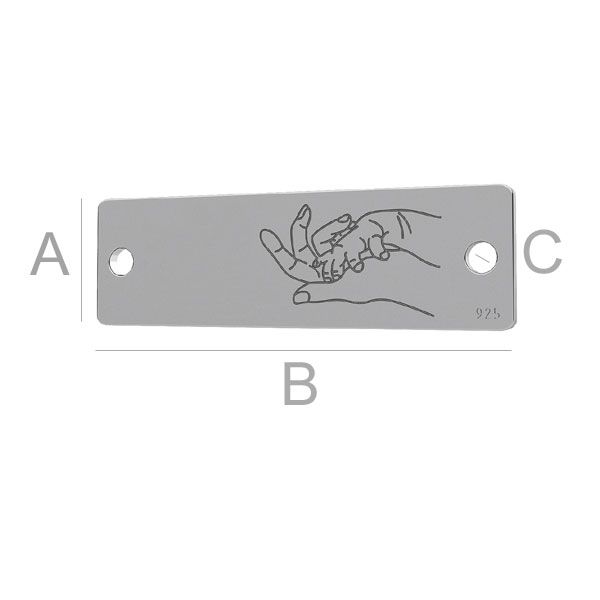 Pandantiv conector - placa dreptunghiulara - mainile mamei si copilului, argint AG 925