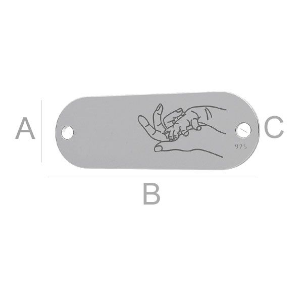Pandantiv conector - placa ovala - mainile mamei si copilului, argint AG 925