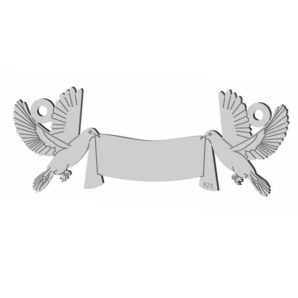 Pandantiv conector - panglica cu porumbei, argintiu AG 925