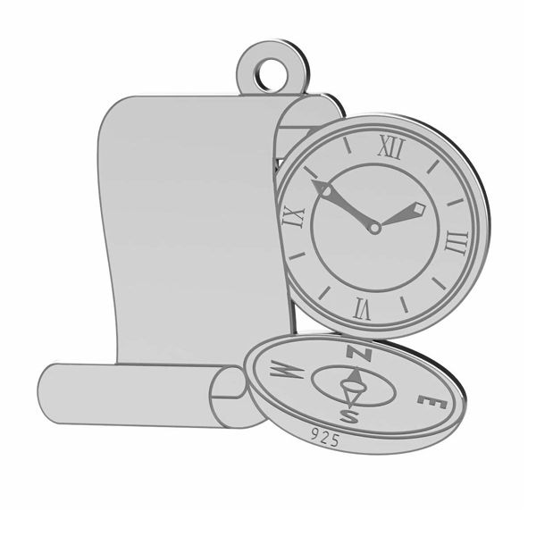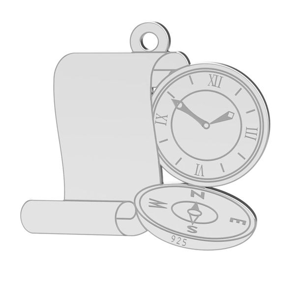 Pandantiv - busolă cu ceas, argintiu AG 925