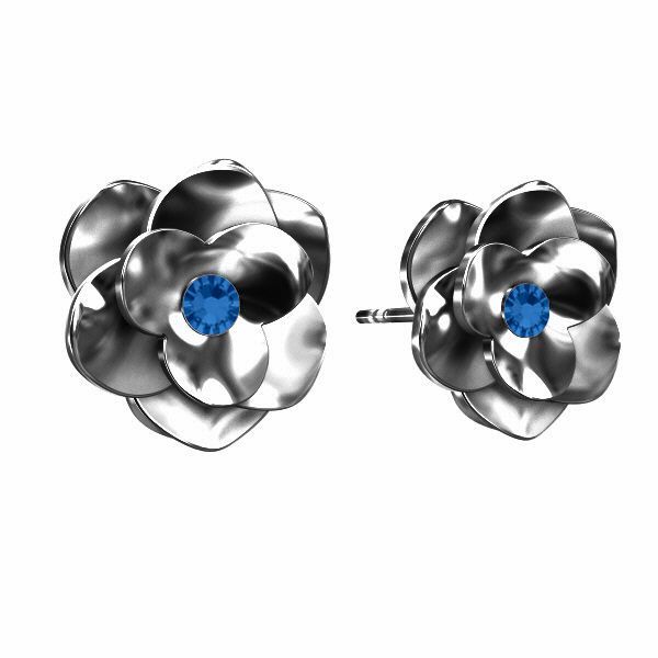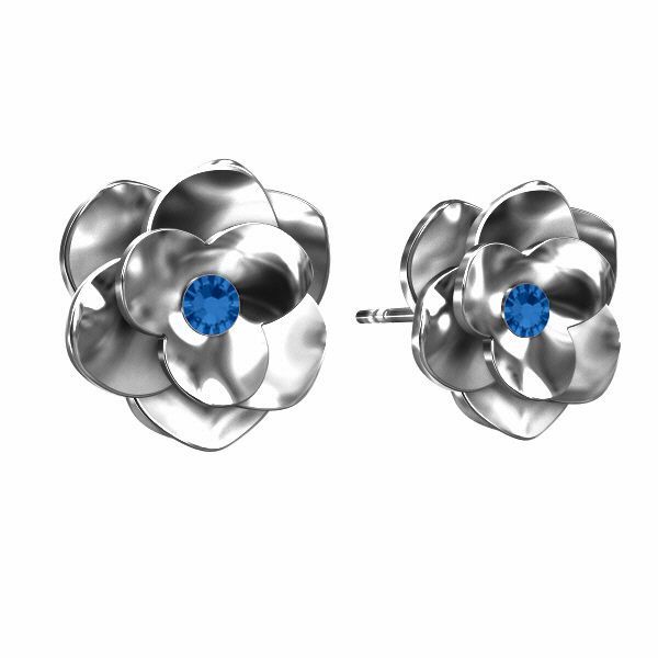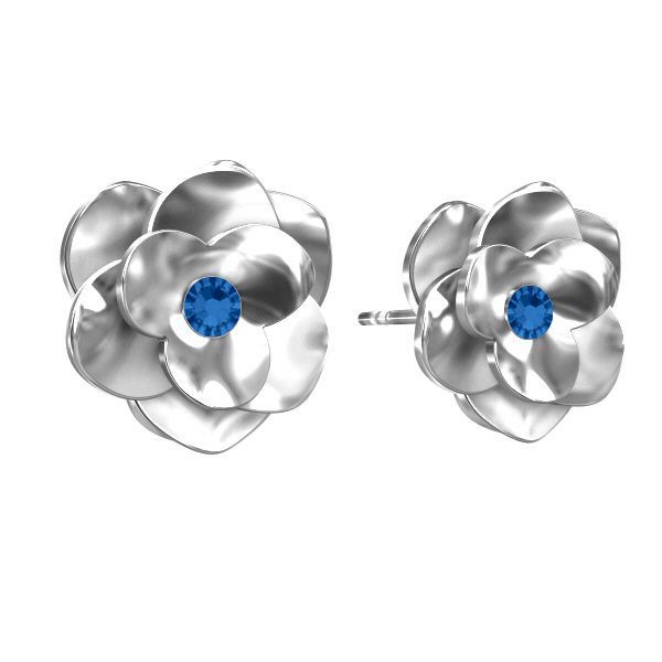 Cercel cu știft - trandafir cu cristal albastru CAPRI BLUE, argint AG 925