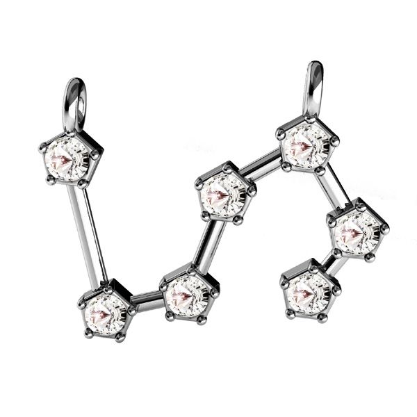 Pandantiv conector - semn zodiacal - Leu cu cristale Gavbari, argintiu AG 925