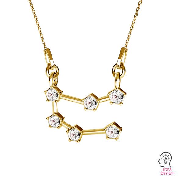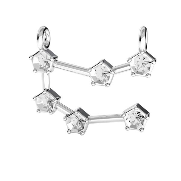 Pandantiv conector - semn zodiacal Gemeni - baza de cristal, argintiu AG 925