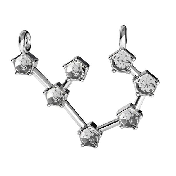 Pandantiv conector - semn zodiacal - baza de cristal Sagetator, argintiu AG 925