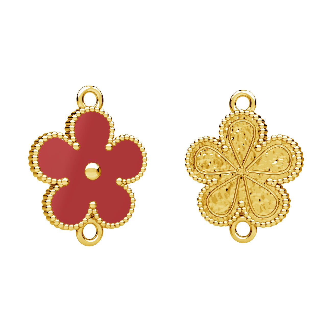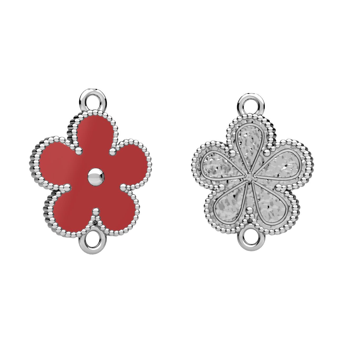 Conector pandantiv - floare, cu rasina rosie, argint 925