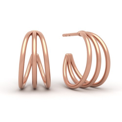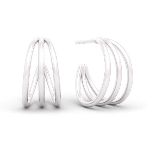Cercel cu tijă - cercuri triple, argintiu AG 925