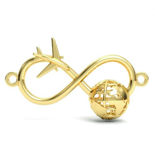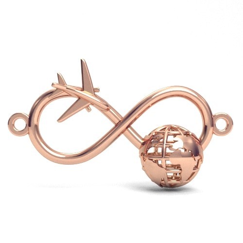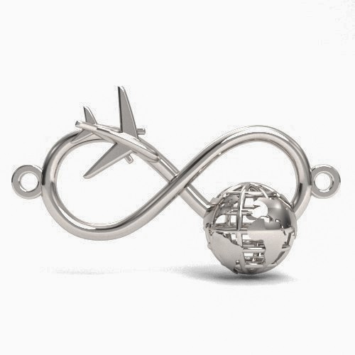 Pandantiv conector - infinit cu glob si avion, argintiu AG 925