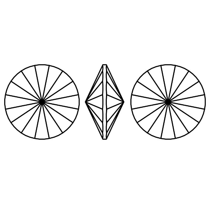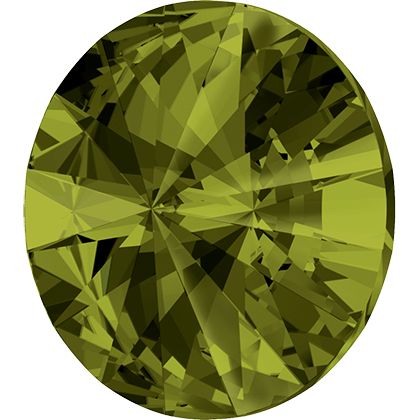 Piatra rotundă tip Rivoli de culoare Olivine F. Se remarcă prin forma simetrică și nuanța verde intensă cu luciu clar. Utilizată în bijuterii, elemente decorative și proiecte creative unde sunt importante culoarea puternică și forma clasică a pietrei.