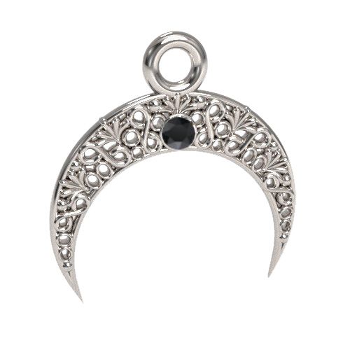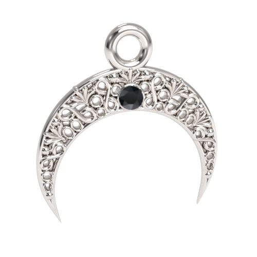 Pandantiv filigranat - lună cu piatră Jet, argintiu AG 925