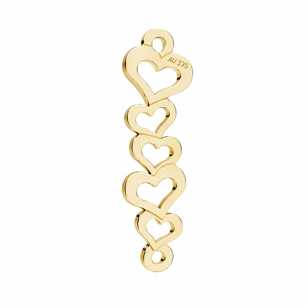 Conectorul ajurat cu motiv de inimioare, realizat din aur AU 375, este un semifabricat ușor și precis. Forma repetitivă se potrivește colecțiilor moderne și clasice.