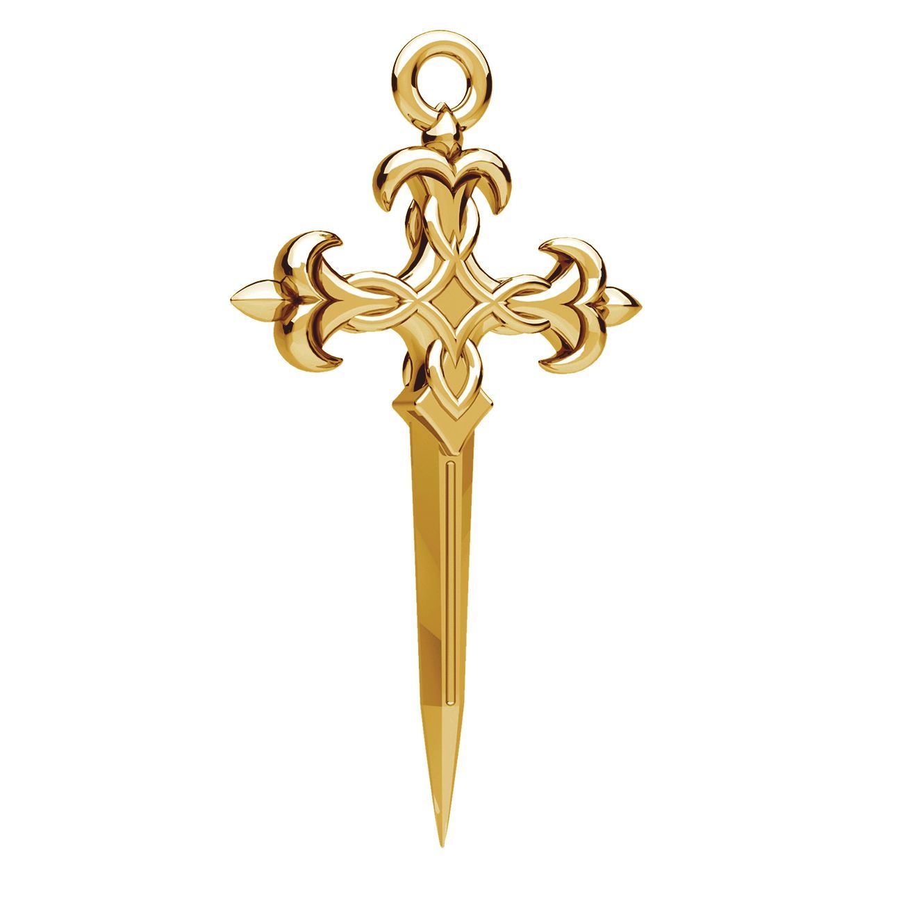 Pandantivul cruce pumnal este un motiv decorativ expresiv cu caracter simbolic. Turnarea din alamă combină forma crucii, a sabiei și a pumnalului, completată de un detaliu cu crin. Structura accentuată evidențiază modelul. Potrivit pentru coliere și cercei.
