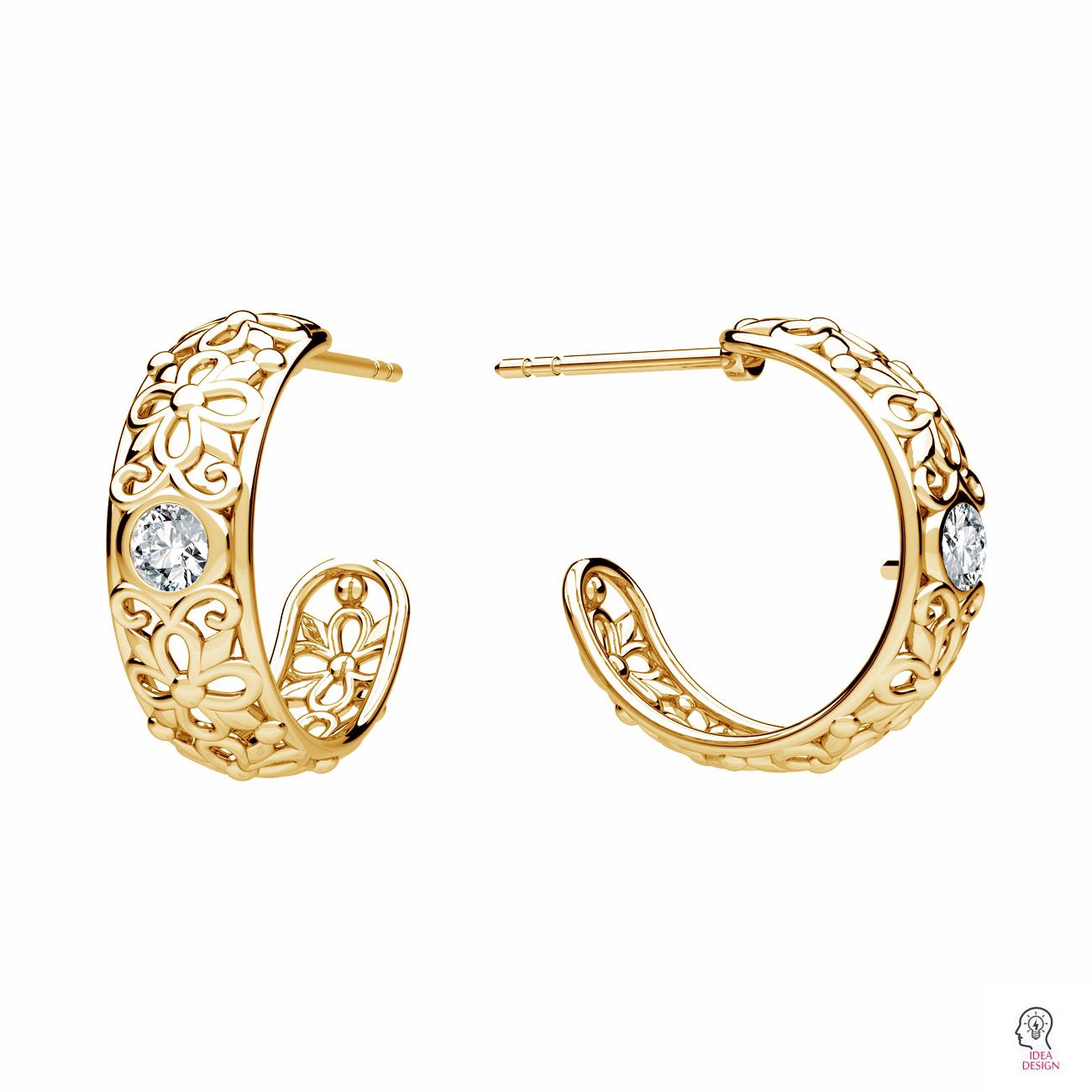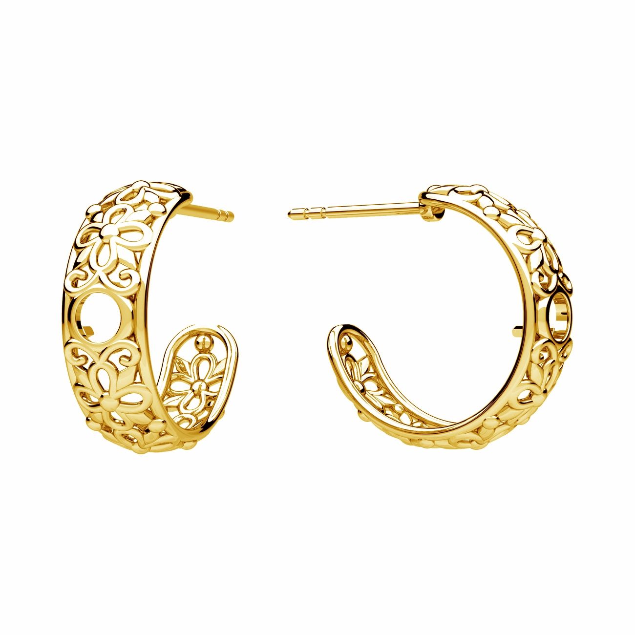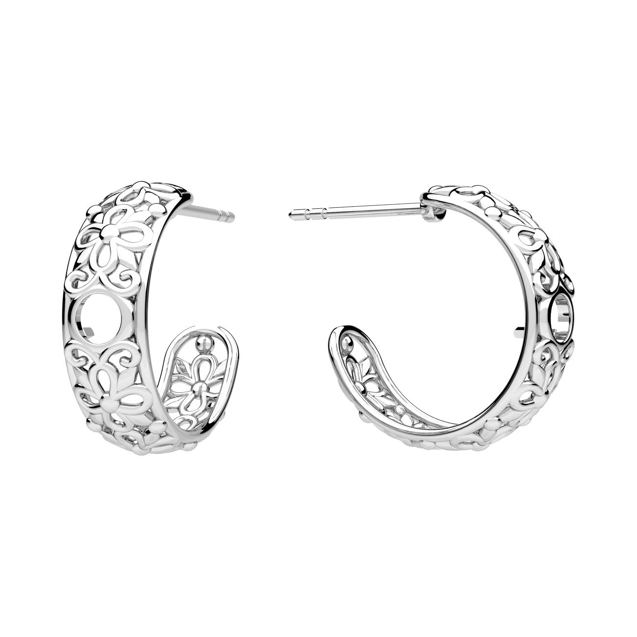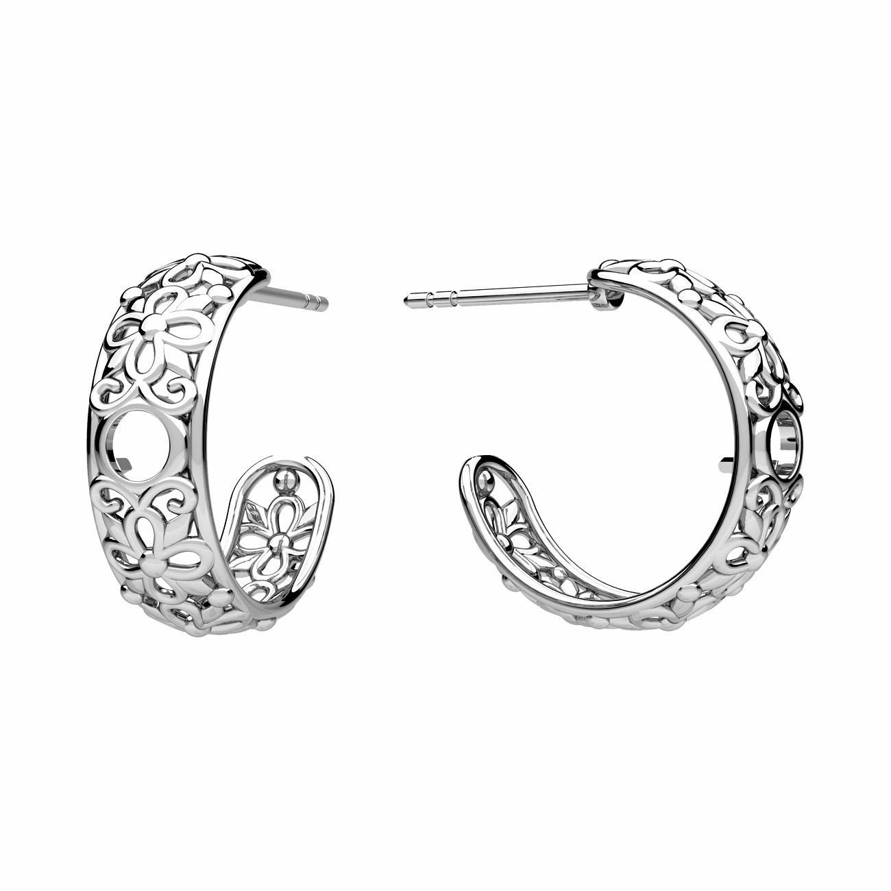 Cercei tip surub ajurati - flori, montura pentru pietre naturale rotunde 3 mm, sterling argint AG 925