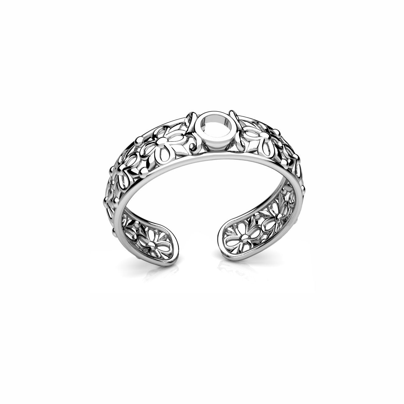 Inel universal ajurat - flori, montura pentru pietre naturale rotunde 3 mm, argint AG 925